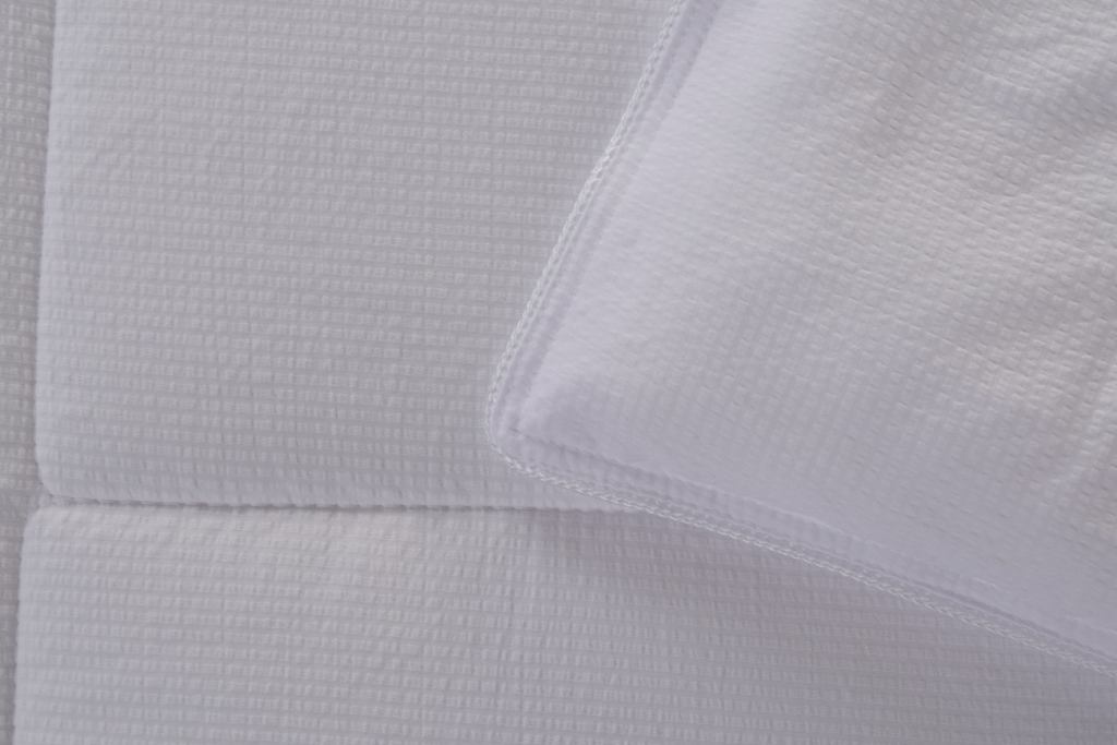 Newest super soft texture jacquard fabric has much better hand feeling than the normal seersucker fabric.It also has cotton like texture.This fabric is jacquard,not normal seersucker,so it has much softer hand feeling,and the jacquard pattern is indeformable.polyester microfibre hot-melt fibre makes the quilt very soft and comfortable,no deformation after washing.Boutique quilt, high cost-effective.Novel and Fashional,beautiful and generous.