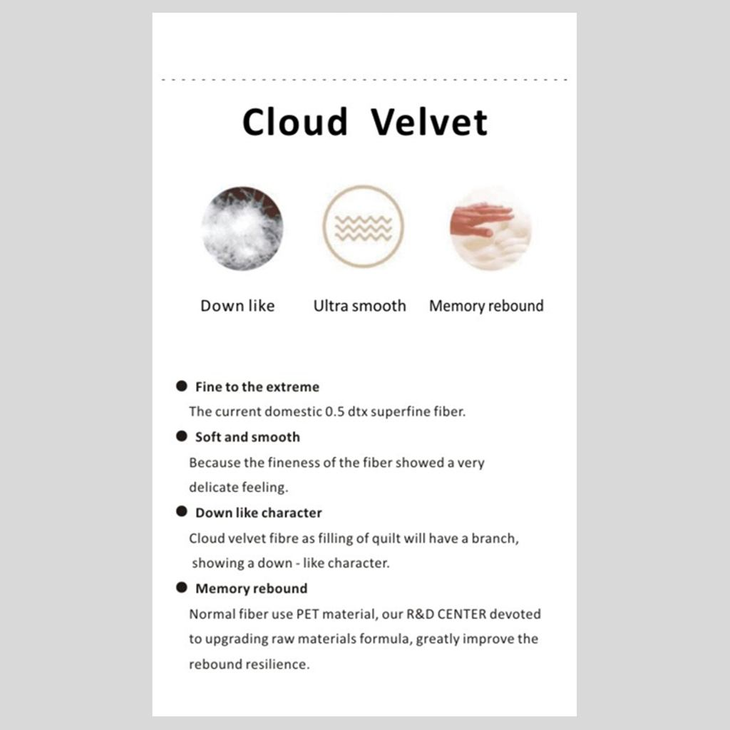 Filling :100% cloud velvet fibre,250g/m2