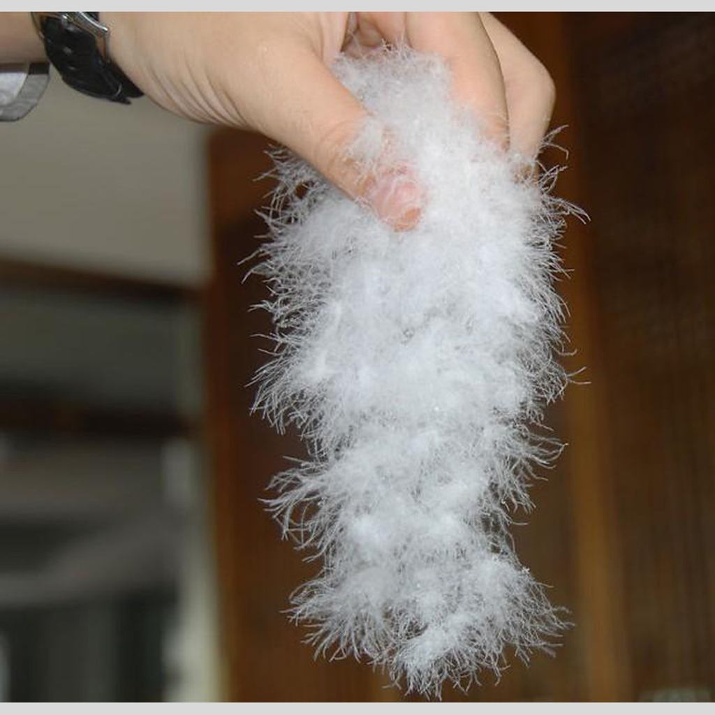 New developed of cloud velvet fibre 0.5D have more fluffy and more recover than normal fibre . The Cloud velvet fibre makes a new breakthrough between down and polyester fibre . It have European OKO certificate and SGS test report . Cloud Velvet fibre is 0.5D x25mm, this is the smallest fibre in China . The special fibre structure makes products more fluffy and memory