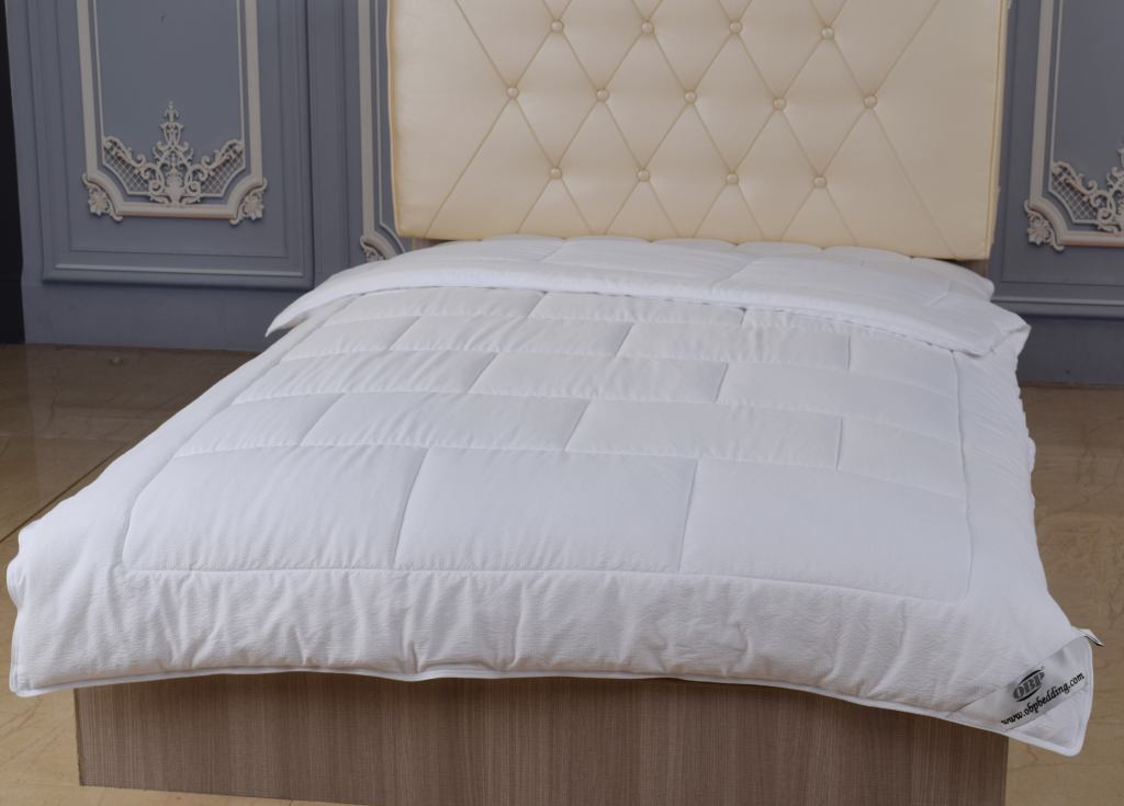 Newest super soft texture jacquard fabric has much better hand feeling than the normal seersucker fabric.It also has cotton like texture.This fabric is jacquard,not normal seersucker,so it has much softer hand feeling,and the jacquard pattern is indeformable.polyester microfibre hot-melt fibre makes the quilt very soft and comfortable,no deformation after washing.Boutique quilt, high cost-effective.Novel and Fashional,beautiful and generous.